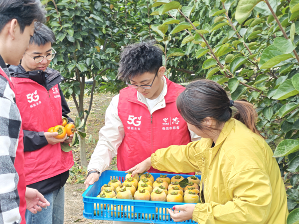 深入田间,志愿助农暖人心。在骑岸社区的柿园里,中国电信江苏通州分公司的志愿者们身穿红马甲,与农户们一同忙碌。他们俯身于果树之间,细心采摘、熟练分拣、精心包装,汗水与笑容交织,构成了一幅动人的丰收协作图。镜头下,志愿者们与农户并肩劳作,不仅缓解了农户采收季的人手压力,更传递出中国电信扎根基层、服务“三农”的温暖情怀。