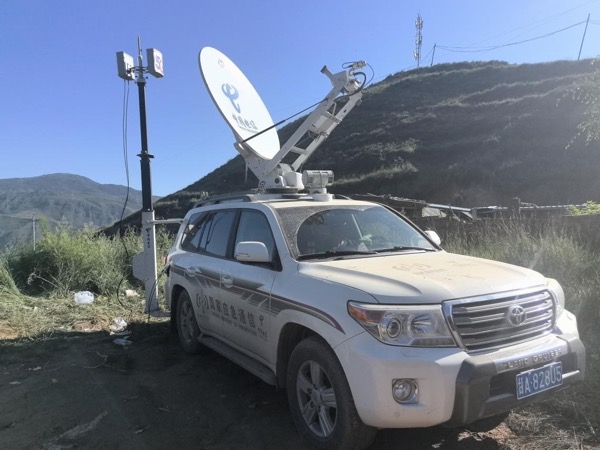 与传统静中通必须停车对星不同,动中通可在80公里/小时行驶中自动锁定卫星,实现“边走边通”。榆中县羊下村至兴隆山景区多处塌方,唯一通道仅余单行道。甘肃应急通信公司动中通卫星车作为“移动指挥部”,在往返转运伤员、物资的30公里颠簸路段全程保持卫星链路不断,车内4G基站持续覆盖半径2公里,为行进中的救援队伍、调度中心提供稳定语音和数据通道,真正做到了“路通、网通、指挥通”。
