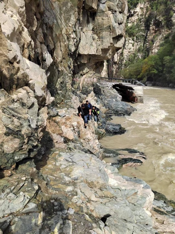 同时周至山区另一个方向陈河-王家河段也在进行着雨后抢修工作。抢修人员一早出发,在距离陈河机房5.5KM处发现道路被河水冲断,维护人员只能改为徒步前行,在背负工具材料徒步9.5KM后终于找到断点位置,并在次日下午2点15分完成OLT脱网故障的恢复。