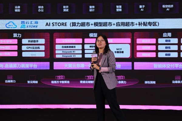 在新品发布区演讲中,中国电信上海公司天翼云能力产品运营中心部门经理金月表示:“AI时代,中国电信上海公司以‘智云上海AI STORE’为锚点,把算力、模型、应用做成‘即拿即走的超市货架’,让每一台云电脑、每一部云手机都成为会生长的智能体——运营商不再只是‘铺路’,而是直接‘递钥匙’,开门即见AI未来。”