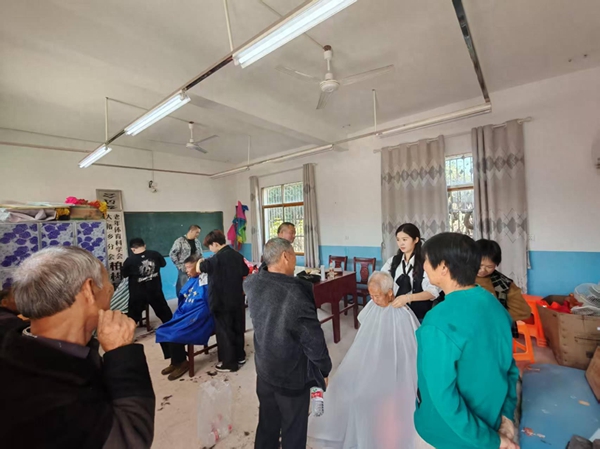 修水修江医院的医师团队现场坐诊,为老人量血压、测血糖、问诊开方,29人完成义诊登记,7人获得复查建议。老人们在家门口就享受到了专家级的健康守护。“花心思”志愿服务队的理发师们则让47位老人“焕然一新”,剪刀起落间满是幸福笑容。