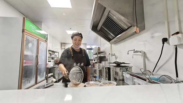 “乐·云厨”位于乐清市人流密集的核心商圈,是餐饮数字化催生的新业态。该区域集中了18个餐饮档口,涵盖衢州菜、西餐牛排、非遗炒粉干等多元品类。每家外卖厨房的档口,均安装了摄像头,烹饪、打包全过程实时直播至监管平台及外卖页面。