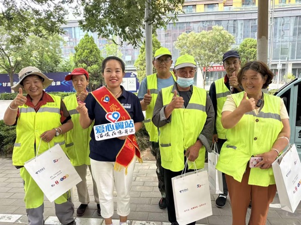 城市的整洁,离不开环卫工人日复一日的坚守。烈日下、风雨中,他们用汗水擦亮街道的每一个角落。“爱心大使”把“清凉包”递到环卫师傅手里——藿香正气水、毛巾、矿泉水……电信蓝与环卫黄的交汇,是这座城市最暖的撞色。