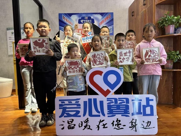 一张小桌、几把彩笔,就能变身“梦想工作台”。刻刀起落、画笔飞扬,“我爱祖国”“盛世中华”稚嫩的笔迹,是孩子们对世界的表白。“爱心大使”始终在旁默默守护,让每一颗星星般的心,都在关爱里自由发光。