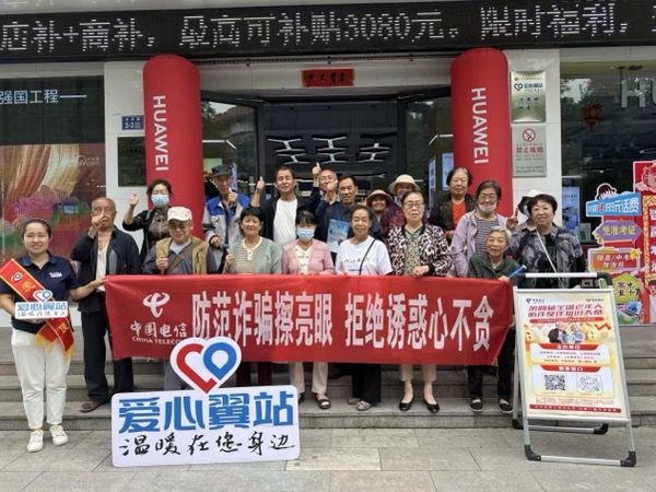 大字版手册、情景版演练、方言版顺口溜......我们把反诈课堂搬进社区,让“保健品骗局”“养老投资”等套路无处遁形。横幅下的叮嘱句句响亮:“防范诈骗擦亮眼,拒绝诱惑心不贪!”讲完课,大使们搀一把、送一程,把“安享晚年”四个字,写进每一位长辈的笑纹里。从晨曦里的“城市美容师”,到脚手架上的“钢铁主力军”;从握着彩笔的稚嫩孩童,到鬓染霜华的慈爱长辈,“爱心翼站”始终执“温暖”作底色,蘸“关爱”为画笔,在每一道不同的人生年轮上,点染属于电信蓝的柔光。