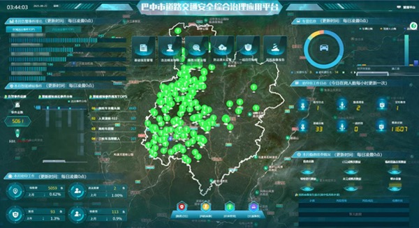 走进指挥中心,一面融合了GIS地图的可视化大屏格外引人注目——隐患点位、车辆轨迹、事故数据、违法统计等信息一目了然。电子沙盘不仅能实时呈现交通态势,还能通过数据建模生成趋势分析报告,辅助管理者科学决策,推动交通管理从“经验判断”转向“数据驱动”。