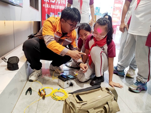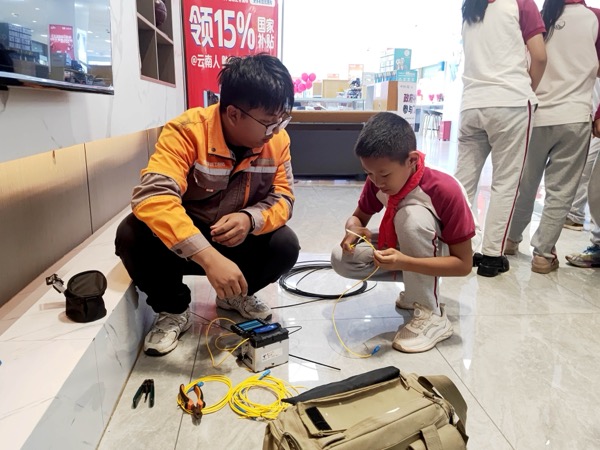 近日,云南省普洱市思茅三小学生走进中国电信普洱分公司世纪广场营业厅,开展通信科技实践活动。在智慧家庭工程师指导下,学生们通过理论讲解、设备演示及动手实操,深入了解了现代通信技术。活动中,工作人员以"手机心脏"比喻芯片功能,借助光猫、路由器等设备直观演示家庭网络"信号接力"原理。智慧家庭工程师现场操作光纤熔接机,以高压电弧精准熔合发丝细的光纤,搭建起"信号传输桥梁",并对比讲解FTTR技术突破——该技术通过光纤到房间实现全屋千兆覆盖,有效解决传统WiFi穿墙信号衰减问题。实操环节学生分组体验光纤整理、设备连接等项目,尝试光猫路由器组网及光纤护套剥离,现场测试全屋无死角信号覆盖效果。活动通过"理论+实践"模式,帮助学生从科技使用者转变为科技探索者,激发对通信技术的兴趣。