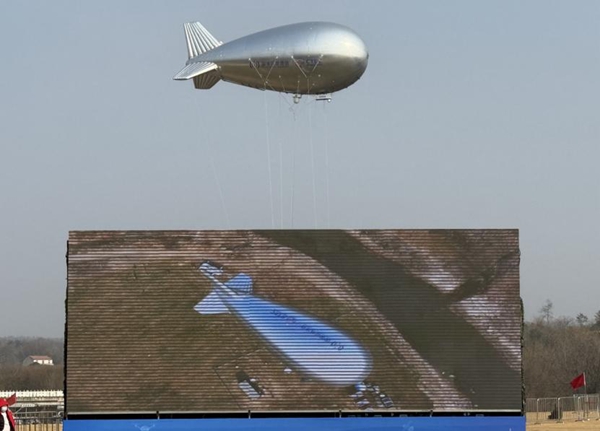 在宽阔的比武演练现场,银白色大型系留飞艇高居百米空中,扮演应急通信“灾情千里眼”“网络探照灯”“传输中继站”角色,一旦地面设施受损,“空中通信灯塔”即刻点亮。