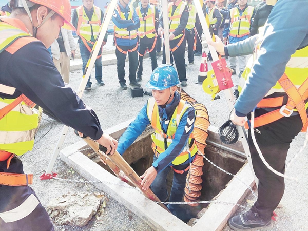近期,中国电信广西桂林分公司聚焦云网综维、装维服务等领域的风险场景,组织150余名专业技术人员开展安全应急实战演练,以练促干,筑牢服务保障安全防线。演练紧扣一线服务实际需求,覆盖登高作业、有限空间操作等关键环节和应急处置全流程,进一步强化“安全护航服务”理念,提升风险预判与快速处置效能。图为装维人员进行在有限空间进行实战演练。