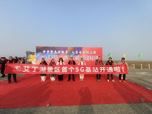 近日,在中国陆地最低点——新疆吐鲁番艾丁湖畔,一场主题为“步步登高迎新年·人生全是向上路”的职工徒步活动热烈举行,千余名选手齐聚于此,在自然与人文交织的景致中迈步前行。与这场赛事同步启幕的,还有中国电信新疆吐鲁番分公司在艾丁湖景区建成的首个5G基站,不仅为现场千余名参赛者的实时直播、智慧打卡提供了稳定网络支撑,更填补了景区5G覆盖空白,为地方文旅数字化升级按下“加速键”。