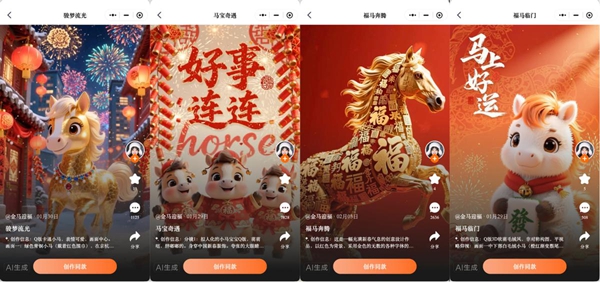 据介绍,本次春节企划同步联动创意社区内容生态,用户可浏览其他创作者作品并一键“做同款”,通过改写提示词快速生成自己的版本,形成“模板化效率”与“个性化表达”的结合,推动节日内容从单向传播走向可持续的共创分享。