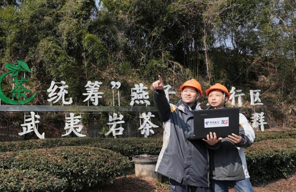 在武夷山燕子窠生态茶园,春茶管护正当时。中国电信武夷山分公司技术团队穿梭于茶垄之间,为茶园里的数字化设备进行巡检维护,特别是在燕子窠等核心区域加强网络覆盖,确保采茶季通信畅通无阻。