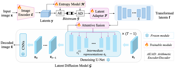随着生成技术的蓬勃发展,视觉内容的构成日益复杂多样,传统编码技术和现有智能编码方法在高压缩比下难以兼顾主观重建质量、视觉保真度和通用性。此项研究的核心在于借助预训练扩散模型的强大先验知识,通过精心设计预优化编码器、轻量级适配器以及注意力融合模块,将压缩后的潜在表示与预训练模型内部特征紧密结合,同时设计分布归一化方法显著提升重建保真度。