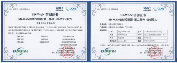 在评估过程中,天翼云SD-WAN展现出优秀的全栈信创适配能力,实现对主流国产软硬件平台的全面兼容;其成熟的协议支持与智能调度机制保障了网络的高可靠与高性能;多项内生安全防护机制有效确保了数据传输与访问控制的安全性。凭借这些经过权威验证的核心能力,天翼云SD-WAN可广泛应用于政务、金融、能源、医疗等对安全可控要求极高的行业场景,为政企客户实现平滑的信创迁移与数字化转型提供坚实支撑。