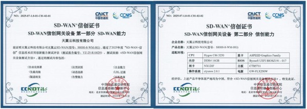 近日,天翼云科技有限公司“天翼云SD-WAN”顺利通过中国信息通信研究院(以下简称“中国信通院”)“SD-WAN⁺信创”项目评估,在“SD-WAN+信创基准解决方案”“SD-WAN信创控制器”及“SD-WAN信创网关设备”三大核心模块的评估中表现优异,成为国内首批通过该系列认证的云服务商。这标志着天翼云在SD-WAN信创领域的技术成熟度、安全可靠性及专业能力获得了行业权威认可,为构建自主可控、安全可靠的数字基础设施提供了坚实支撑。