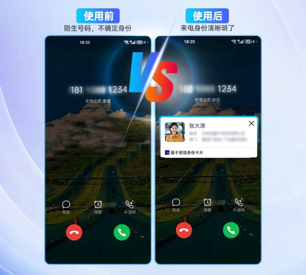 工作中常遇到“接电话时,想快速知晓对方身份”的场景?量子密信的“来电弹屏”功能完美解决:开启“来电弹屏”后,同组织系统来电时会自动弹出对方的量子密信身份卡片(包含所属部门、职位等信息),沟通更精准,陌生电话不再错接、漏接。