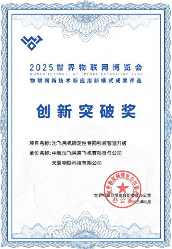 近日,2025世界物联网博览会物联网“新技术”“新应用”“新模式”(简称“三新”)成果发布,天翼物联“沈飞民机确定性专网引领智造升级”项目荣获创新突破奖,“中航信5G广域备份融合组网智筑航空动脉”项目荣获产业先锋奖。