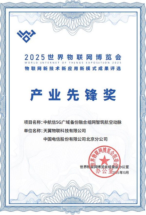 荣获产业先锋奖的“中航信5G广域备份融合组网智筑航空动脉”项目,由天翼物联、中国电信北京公司携手打造,以独特的技术优势和显著成效,为中航信核心数据传输保驾护航,有效提升了民航系统的稳定性和可靠性。