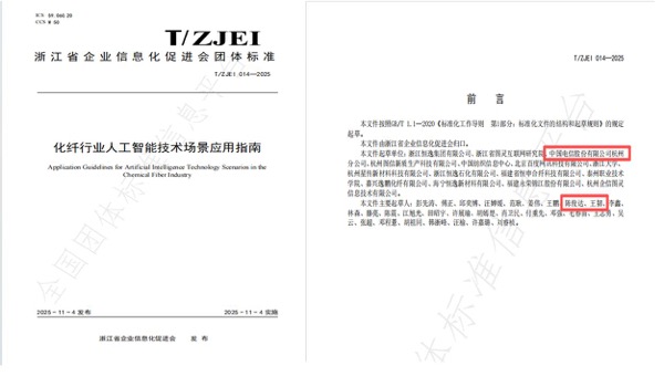近日,在浙江乌镇举办的2025年数字长三角发展大会之长三角工业AI创新发展对接会上,浙江省企业信息化促进会正式揭牌成立“化工化纤行业数智化专委会”,并同步发布《化纤行业人工智能技术场景应用指南》(浙江省企业信息化促进会团体标准),为化纤行业AI技术的规范化应用和场景落地提供了明确指引。中国电信杭州分公司作为该指南的前三起草单位之一,深度参与了标准的编制工作,其萧北分局的王韧、陈俊达担任起草人,体现了中国电信在人工智能技术与行业融合方面的技术积累和实践经验。