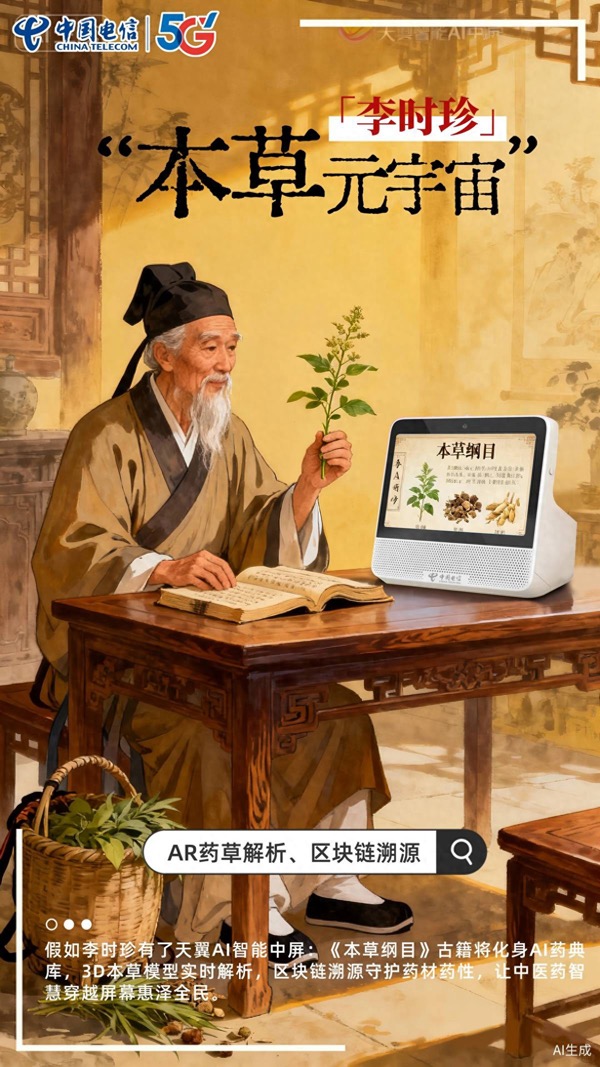 假如历史先贤执掌天翼AI智能中屏,将激起怎样的智慧风暴?快来一起看历史先贤与天翼AI共同开启一场跨越千年的对话,李时珍解析3D本草,苏轼复刻数字佳肴,李白诗酒年华……古老智慧与未来科技在此刻交响。