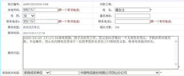 3月20日,12345的表扬电话打来时,李明鸽正在营业厅指导新员工调试老年机。电话里,用户女儿的声音带着哽咽:“李店长不仅解决了问题,更让我们在外地的子女知道,父亲身边有个比亲人还亲的‘贴心闺女’。”而在老人床头柜的玻璃板下,早已压着一张泛黄的便签——那是李明鸽第一次上门时画的“紧急联系图”,边角处还贴着她手写的小字:“有事找小李,24小时在线”。