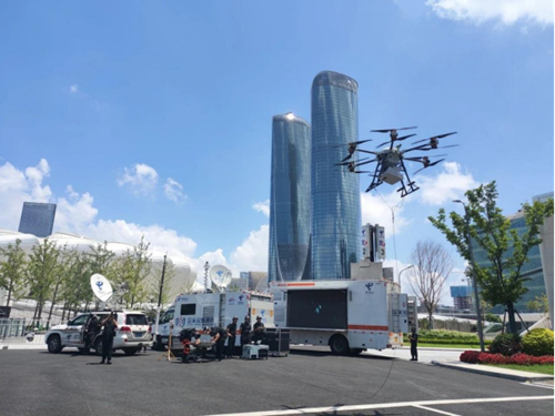以防万一,“大莲花”外围还部署了应急通信设施——50余辆应急通信车、10余套高通量卫星便携站、超百部卫星电话等装备,将在赛事期间严阵以待。此外,当周边2-4平方公里网络信号中断时,最高滞空150米的无人机基站将发挥作用,10分钟内提供4G/5G信号覆盖,采用的光电复合系留缆能够对无人机进行不间断电源供应和数据传输,持续服务时长超24小时。有了这些应急通信技术加持,亚运会期间的通信网络运行将更有保障。
