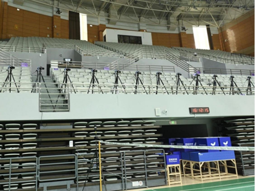 在羽毛球馆看台一侧,二十台4K高清摄像机一字排开,一台VR相机在球网边以裁判视角竖立着,它们在捕捉运动员不同角度的动作,直连后台电脑进行处理。
