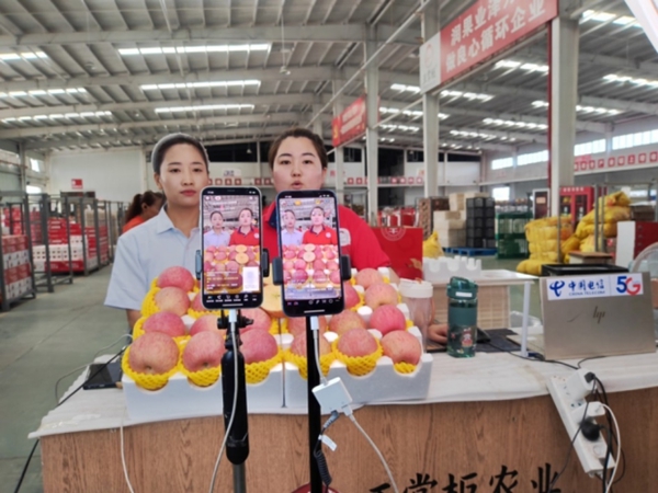 “家人们放心拍,咱们洛川的苹果,都是自然生长的,既脆甜又多汁,保证原产地发货……”走进洛川县王掌柜农业数字农业分选中心,依托中国电信5G网络,电商团队主播李萌正在直播间向“粉丝”们推荐洛川苹果。这个设在工厂车间的直播间,月均直播营业额达1000万元。