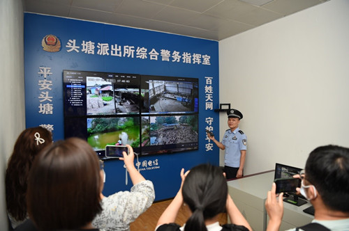图:头塘派出所副所长罗常恩介绍“百姓天网”使用情况