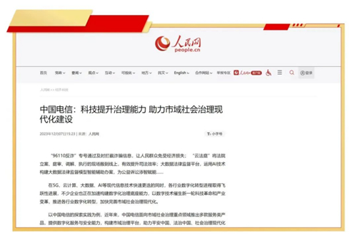 近日,人民网刊载系列文章,报道了中国电信坚定履行“建设网络强国、数字中国,维护网信安全”的使命责任,全面深入实施“云改数转”战略,完成云、网、数、智、安、量子以及数字平台等七大领域新业务和未来产业布局,深度赋能千行百业数字化转型,助力数字时代的中国式现代化建设。本期报道我们来进一步了解中国电信“硬核”科技如何赋能社会治理现代化。