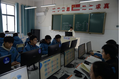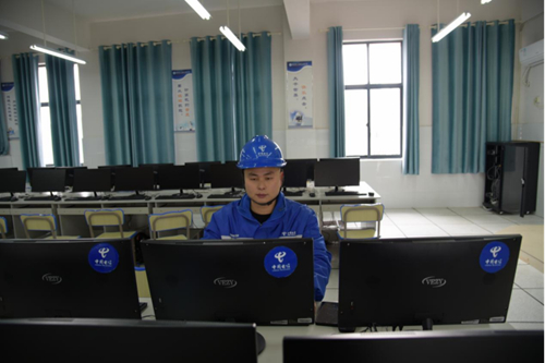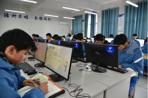 1月19日,在湖南怀化市新晃恒雅高级中学计算机教室里,老师带领高一(8)班的学生在上一堂信息技术课,该校计算机教室采用的中国电信“天翼云”电脑设备区别于传统设备,主机(虚拟机)位于云端,由湖南新晃电信提供运营和维护服务。