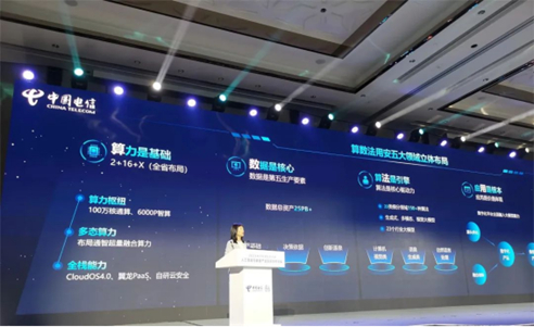 在2023数字科技生态大会上,安徽电信总经理刘颖发表题为“算数为基 智领未来”的主题演讲。
