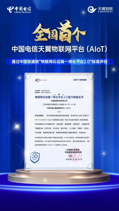 近日,由天翼物联自主研发的中国电信天翼物联网平台(AIoT)顺利通过中国信通院“物联网云边端一体化平台2.0”标准评估,成为全国首个通过该项评估的企业。