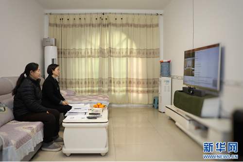 1月8日,原告刘兴容(左一)在家中通过电视机“全渝数智法院TV版”线上出庭。