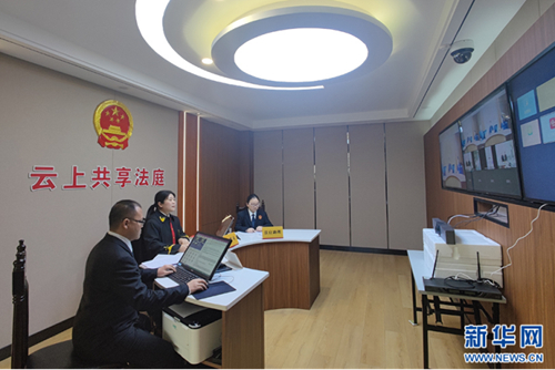 1月8日,铜梁法院法官运用“云上共享法庭”开庭审理案件。