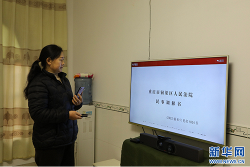当事人通过机顶盒收到电子送达文书。新华网发(蹇懿 摄)