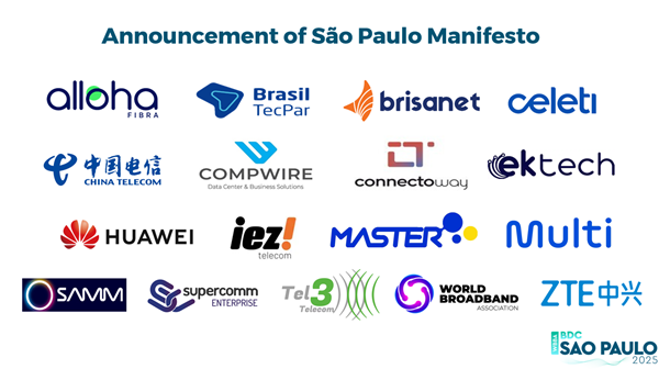 10月1日,全球云网宽带产业协会(World Broadband Association,简称:WBBA)云网宽带发展大会在巴西圣保罗召开。WBBA在会上正式发布了“推动智能云网发展宣言(简称:圣保罗宣言)”,携手中国电信、华为、中兴、Alloha Fibra等WBBA会员以及南美地区运营商及主要互联网服务提供商(ISP)等近20家产业伙伴,共同擘画南美数字经济发展的新篇章。