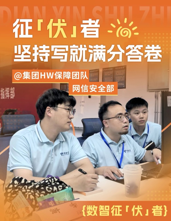 集团HW保障团队由网信安全部的张桐伟、晁喆、盛雷雷组成,为迎接2025年HW保障任务,他们在酷暑中发起冲刺。他们用36小时完成“极限改造”,将毛坯场地改造为安全“根据地”。他们以指挥部为阵地,用灯火不灭的坚持,保障电信全网威胁处置零差错,交出数智安全团队的满分答卷。