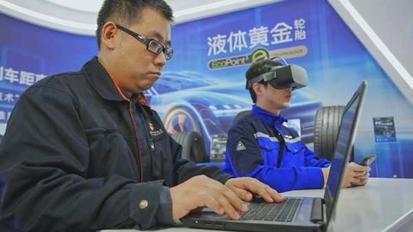 轮胎设备越先进越复杂,如PS2A成型机具有零部件200个,一旦设备出现故障,往往需要厂家上门维修,在等待期间设备开机率不高,造成资产闲置浪费。“其中,我们研发的AR设备远程指导系统,可以完美解决该问题,维修专家远程在电脑端通过声音、视频、文字、图示等方法来实时指导现场维修人员处理复杂问题。”周江说。