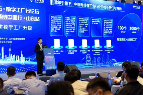 中国电信山东公司副总经理米一华在致辞中介绍了数字化、智能化、网络化的大环境下,中国电信山东公司积极构建核心竞争力,在数字工厂建设道路上的探索和实践中的具体举措和成果。中国电信山东公司坚定贯彻集团“云改数转”战略,以“网是基础,云为核心,网随云动,云网一体”的总体思路,加快推进以5G为代表的新基建,结合本地实际规划了山东“2+16+X”的云布局,推进多层次的云网融合布局演进,不断夯实数字工厂自主可控的数字底座。中国电信山东公司以“融云、融AI、融安全、融平台”为驱动,加大优质高效的数字化产品和服务供给,为数字工厂提供更精准、更高效的解决方案,为各行各业“上云用数赋智”,全省累计打造5G定制网项目超200个,5G行业商用项目近千个,形成了智慧制造、智慧化工、智慧电力等一系列典型案例。