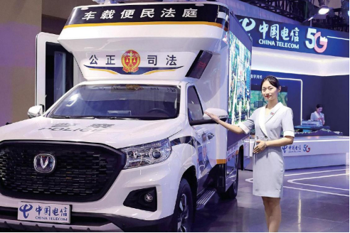 重庆电信除创新推出全国首例“IPTV智能法律咨询服务”,让天翼高清电视秒变“律师”外,还协助重庆市高级人民法院等单位推出了能够移动办案的5G车载便民法庭。基于中国电信5G定制网,5G车载便民法庭可以通过5G网络进行数据和视频传输,支持法治宣传、智能诉讼、多元解纷、执行指挥、远程接访等多种应用场景,有效打破了法院管辖区域限制,能够“载着法庭”上山下乡、移动办案,被人民群众亲切地称为“家门口的法院”。