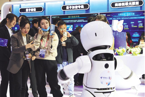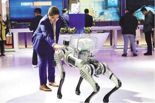 走进中国电信展台,首先映入眼帘的是机器狗“B1”,惟妙惟肖的姿态、灵活矫健的步伐,吸引了一大批观众前来互动。