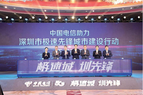 中国电信举办以“极速城·圳先锋”为主题的发布会,助力深圳市极速先锋城市建设行动。