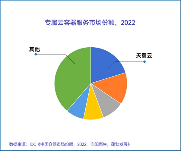 近日,IDC发布的《中国容器市场份额,2022:向阳而生,蓬勃发展》数据显示,天翼云在2022年专属云容器服务市场中,高居榜首,实力领跑。
