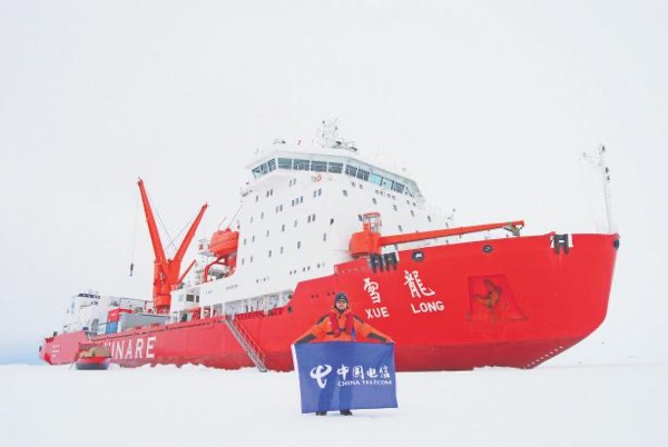 2013年12月27日,中国电信为“雪龙号”极地考察船提供通信保障,中国电信员工黄辉随“雪龙号”来到南极大陆。