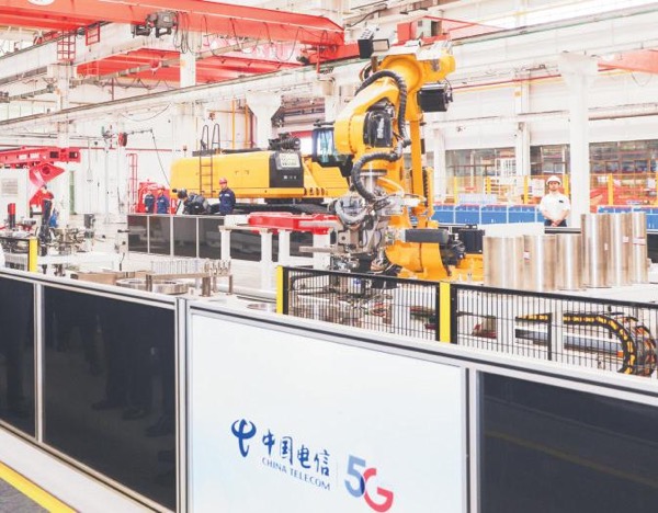 2021年6月16日,中国电信、三一重工和华为公司联合举办5G全连接工厂发布会,国内装备制造业首个5G全连接工厂落地北京昌平区。图为5G全连接工厂实景。