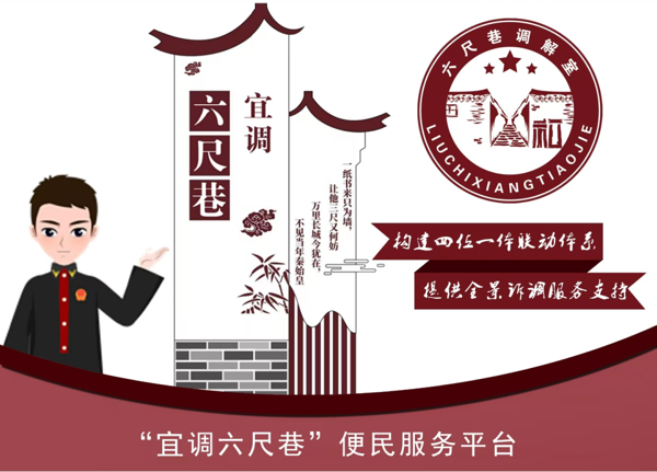 “宜调六尺巷”便民服务平台以“一根网线、 一块屏、一个小程序”为标准配置,将镇街、村社作为基本布局点,通过连接人民法院、诉调中心、镇街、村社等组织,将原来分散的基层治理力量集中并串联起来,开展调解指导、远程庭审、普法宣传等工作,推动矛盾纠纷诉前化解。