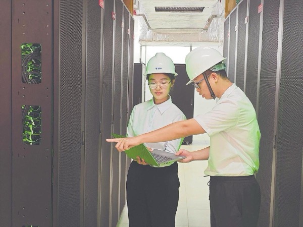 中国电信云网工程师在海南人工智能计算中心进行日常巡检。