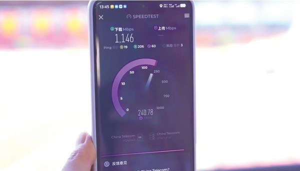 中国电信南通分公司在比赛场地部署的5G-A多载波聚合技术,实现频谱资源的高效利用,场内实测数据显示,5G-A下行峰值速率达到1146Mbps,上行峰值速率达到240Mbps,较传统5G网络大幅提升,这意味着球迷拍摄的4K高清进球视频可极速完成上传,媒体记者现场拍摄的素材能通过5G-A网络“即拍即传”,大幅提升了赛事报道时效性。