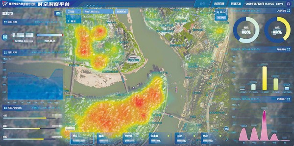 与此同时,重庆公司自研的“时空洞察”平台,依托基站信令与自主位置分析模型,具备实时人流预警、区域人群画像与动向分析能力。在城市内涝、山洪灾害等突发情况处置中,平台可通过短信、AI外呼定向通知重点人群,快速发布预警并引导疏散;日常管理中,能依据商圈、景区等人流趋势,辅助优化交通调度与公共资源配置,让城市运行更具“预见性”。